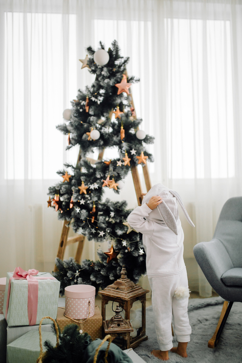 Сложите книги пирамидкой на полу или на тумбочке. Обмотайте гирляндой. Сверху водрузите звезду или крупный шар. Это выглядит стильно, необычно и очень фотогенично. Все гости будут делать селфи именно с вашей книжной елкой!