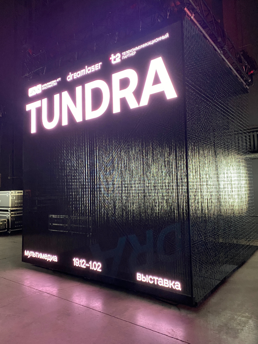 Я лично думала, что о тундре, но нет, всё не так-то просто. Коллектив и правда так называется, но смысл выставки не в том, чтобы нам что-то новое о тундре поведать, а всколыхнуть подсознание, открыться новым ощущениям, которые постепенно раскачивает музыка, свет и вибрация пространства.