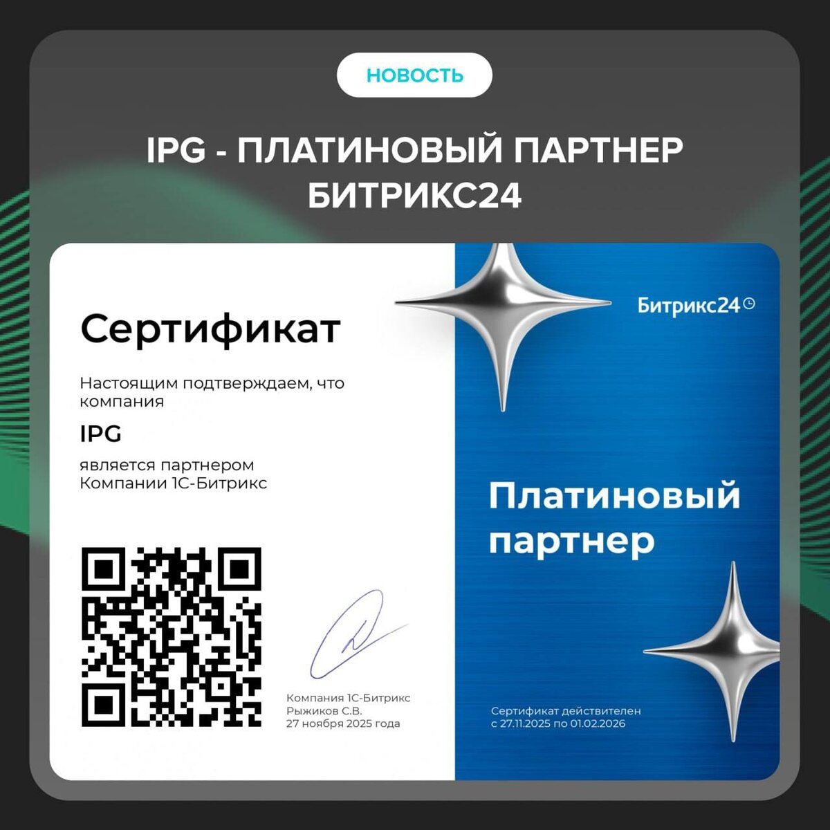 ✨IPG получила статус Платинового партнера Битрикс24!✨