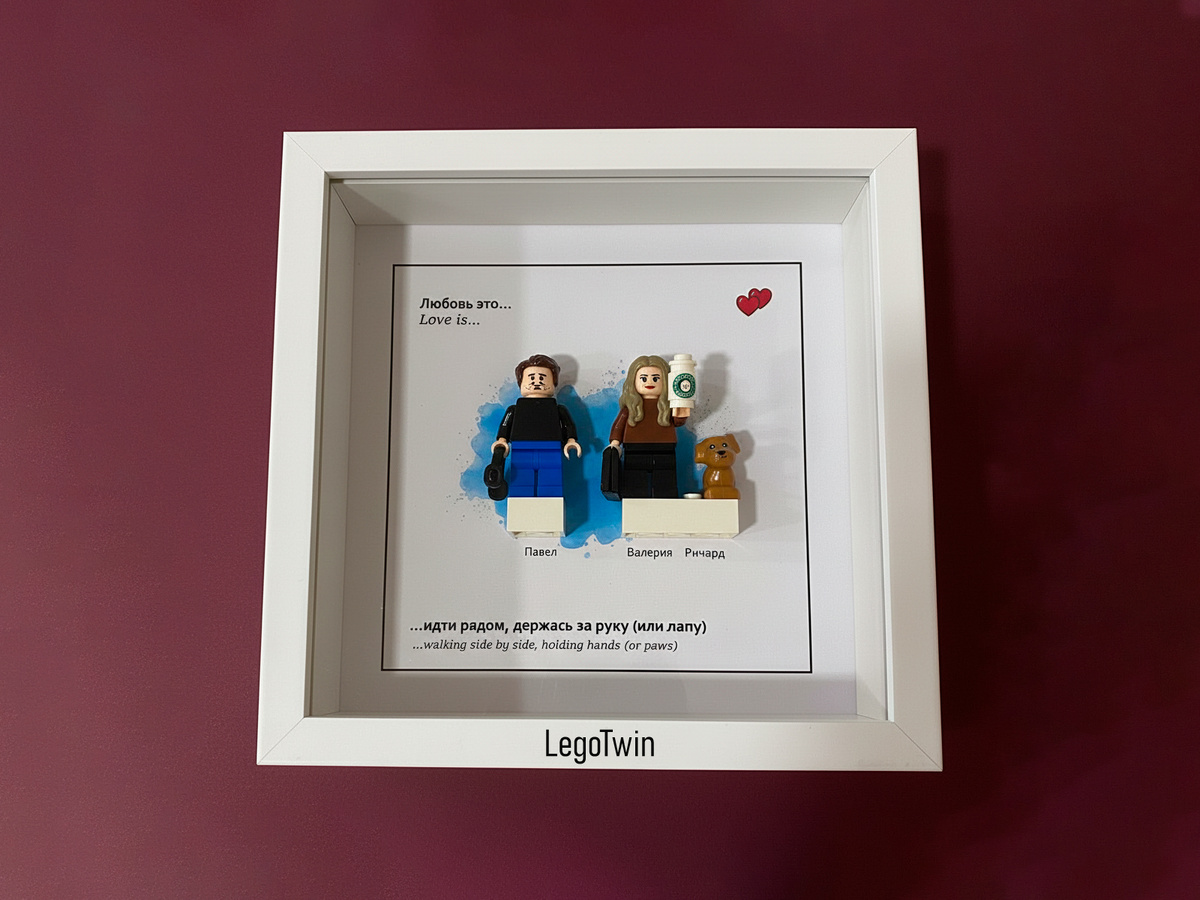 Подарок перестает быть просто предметом в тот момент, когда в нем появляется история, и именно поэтому лего в рамке сегодня воспринимается не как сувенир, а как застывший момент жизни, собранный из знакомых деталей, где каждая фигурка, жест и цвет работают на эмоцию. Lego давно стал частью взрослой культуры, ведь эти кубики используются не только детьми, но и архитекторами, психологами и дизайнерами, а бренд LegoTwin превратил эту универсальность в формат персональных подарков, которые говорят без слов и при этом выглядят стильно и современно. Лего человечки в рамке удивительным образом вызывают доверие и тепло, потому что наш мозг мгновенно считывает их как что-то знакомое и безопасное, а дальше начинается магия узнавания, когда в миниатюрных персонажах мы видим себя, близких, любимых или коллег. Интересный факт из мира Lego заключается в том, что у большинства минифигурок одинаковые пропорции, но именно за счет аксессуаров, поз и деталей они становятся абсолютно разными, и этот прин