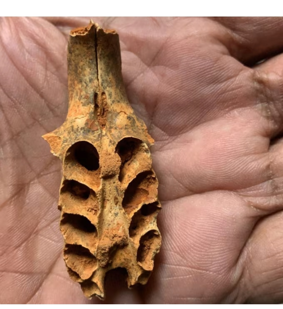 Но вернемся к пчелам. Исследователь пригляделся к зубным лункам и увидел в них странную «грязь». Она напомнила ему коконы ос. Чтобы разобраться, ученые сделали компьютерную томографию. 3D-снимки показали: это не осиные, а именно пчелиные гнезда! Осы строят из пережеванных растений и слюны, а эти капсулы были гладкими внутри — явный признак работы пчелы, которая использует утрамбованную грязь и восковое покрытие.