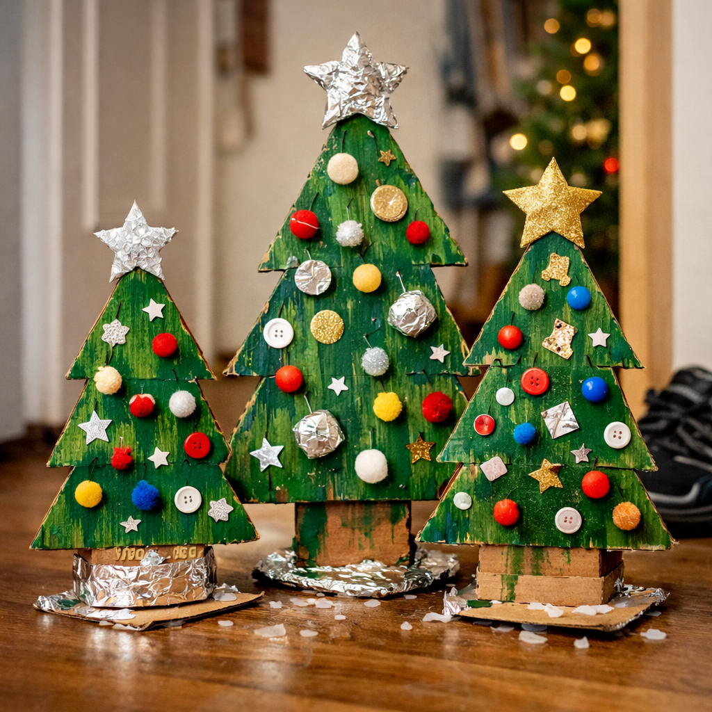 Это должно было быть спокойное воскресенье. Папа ушёл с Максом на пробежку, Даша спала, а Миша сидел на полу и перебирал кубики. Идеальный момент, чтобы разложить стирку. Ну, почти. Я открываю шкаф, а оттуда — как по заказу — на меня выпадает огромная картонная коробка. Та самая, в которой пришли средства для купания. Я уже хотела её выбросить, но… вспомнила статью про картонные ёлки. Ну как выбросить такую вдохновляющую возможность? Через полчаса вся кухня была в зелёной краске. Миша с серьёзным видом «валиком» красил свою ёлочку — кусок картона в форме треугольника, который мы с ним вырезали, как могли. А Даша проснулась, увидела это безумие и села рядом и принялась отрывать от скатерти кусочки салфеток, которые мы потом тоже пустили в дело. Максим пришёл с улицы, увидел весь процесс и радостно заявил: «Вот теперь дома пахнет Новым годом!» Мы наклеили фольгу, помпоны, даже пуговицы от старой рубашки. Миша гордо нёс свою кривую ёлку в комнату и сказал: «Смотри, папа, это настоящая!» И