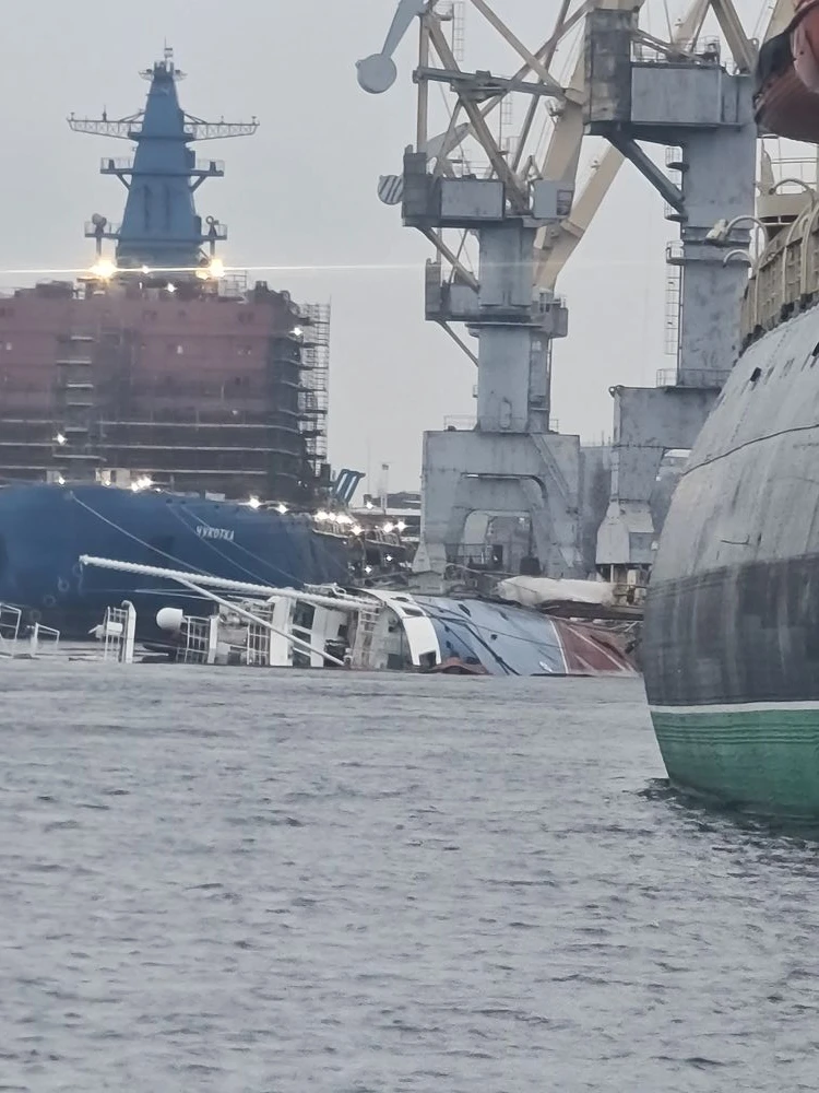 Вот в таком неприглядном виде пребывает буксир «Капитан Ушаков» практически в самом центре морской столицы России всего буквально за час до начала прямой линии с В. В. Путиным. Судно, получившее крен в августе текущего года, всё это время продолжает лежать на грунте. Вроде и не затонуло полностью, но и не на плаву. Подъём буксира планировался ещё до 20 ноября, но что-то пошло не так. Дела у «Капитана Ушакова» плохи, поскольку даже внимание СМИ на различных ресурсах ничего не меняет в судьбе судна. Как лежало оно на грунте, завалившись набок уже почти полгода на виду у жителей и гостей Санкт-Петербурга, так и продолжает лежать. «Капитан Ушаков» прекрасно виден с набережной Лейтенанта Шмидта. Шансы буксира дотянуть в таком положении до Нового года повышаются с каждым днём. Досадно, что современное судно с неограниченным районом плавания и возможностью работы в замерзающих морях — в соответствии с ледовым классом Arc 4 — постигла такая беда. Материал для ВАС – видео буксира «Капитан Ушако