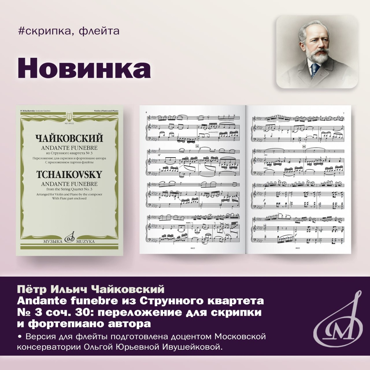 И. Чайковский. Andante funebre из Струнного квартета № 3, соч. 3. Переложение для скрипки и фортепиано автора Продолжаем работать над изданием наследия П. И. Чайковского. В этот раз рассказываем об одном из самых проникновенных его опусов. 🔵Трагические обстоятельства создания Струнного квартета № 3 полностью определили его облик. Смерть друга Чайковского, чешского скрипача-виртуоза Фердинанда Лауба, застала его во Франции на рубеже 1875–76 годов. 🔵Лауб был одним из лучших музыкантов поколения, обладал уникальной техникой и широчайшим репертуаром, общался с Листом, Сметаной, братьями Рубинштейнами, Александром Серовым и Владимиром Одоевским. Чайковский ставил его в один ряд с Йозефом Иоахимом. К слову, Лауб был одним из тех, кто представил публике премьеру Первого струнного квартета Чайковского. Таким образом, жанр квартета стал символичным для дружбы Чайковского и Лауба. 🔵Чайковский стремился чтобы сам тембр струнного квартета был траурным, и поэтому выбрал ми-бемоль минор в кач