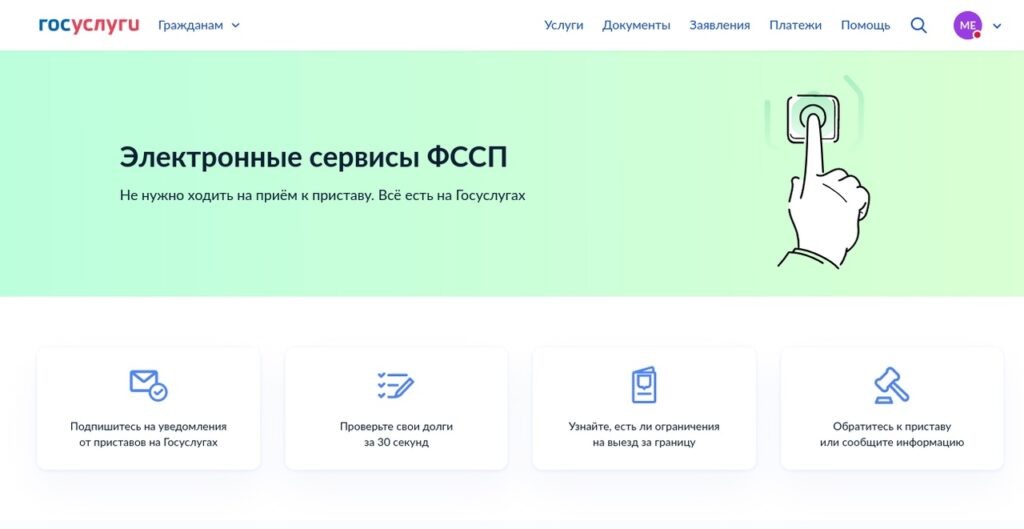 Услуга позволяет сторонам исполнительного производства получать расширенную информацию и подавать различные обращения в рамках исполнительного производства в удаленном режиме. На портале «Госуслуги» можно узнать сведения о причине возбуждения исполнительного производства, наложенных ограничениях на имущество, об ограничениях выезда заграницу, о подлежащих к выплате суммах, а также контакты судебного пристава и подробные действия судебного пристава. Услугу можно заказать в разделе «Органы власти» — «ФССП России» — «Предоставление информации по находящимся на исполнении исполнительным производствам в отношении физического и юридического лица» — «Предоставление информации о ходе исполнительного производства (онлайн)». Адрес услуги: https://www.gosuslugi.ru/10003/9/info Памятка о предоставление информации о ходе исполнительного производства: Перейдите по ссылке www.gosuslugi.ru/10003/9/info Или выберите в «Каталоге услуг» раздел «Безопасность и правопорядок», категорию «Судебная за