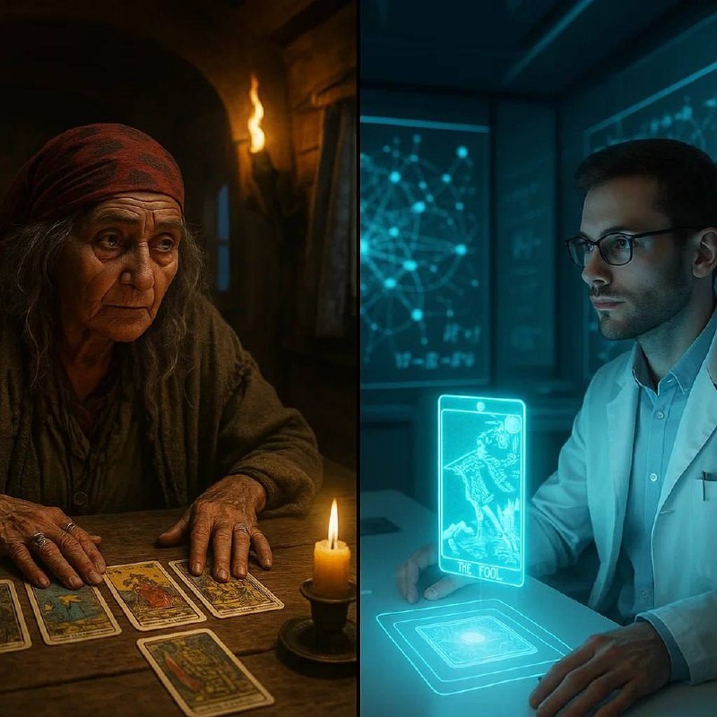 : ⚠️Будущее уже существует как готовая линия ⚠️Сознание человека пассивно по отношению к этой линии ⚠️Информация о будущем может быть получена независимо от наблюдателя Эта модель: 🔺метафизически наивна 🔺противоречит современной философии науки 🔺делает человека объектом судьбы, а не её соучастником Интегральное Таро эту модель отвергает. Прогностика в Таро не описывает будущее событие как фиксированный факт. Она описывает конфигурацию потенциального будущего в резонансе с текущим состоянием наблюдателя. Иначе говоря Таро показывает не что будет, а как мир ответит на тебя, если ты останешься тем, кем являешься сейчас. Это принципиально иное основание, чем гадание.