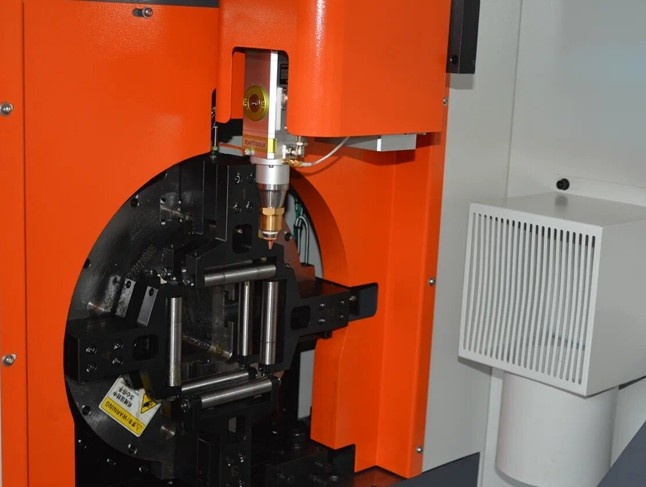 Режущая голова — узел, в котором формируется непосредственно режущий лазерный луч, фокусируемый на материал. В волоконном станке лазерный луч по световоду поступает в режущую голову, где проходит через коллиматор (прямое выравнивание пучка) и фокусирующую линзу. Линза собирает луч в крошечное пятно на поверхности трубы, достигая колоссальной плотности энергии.
