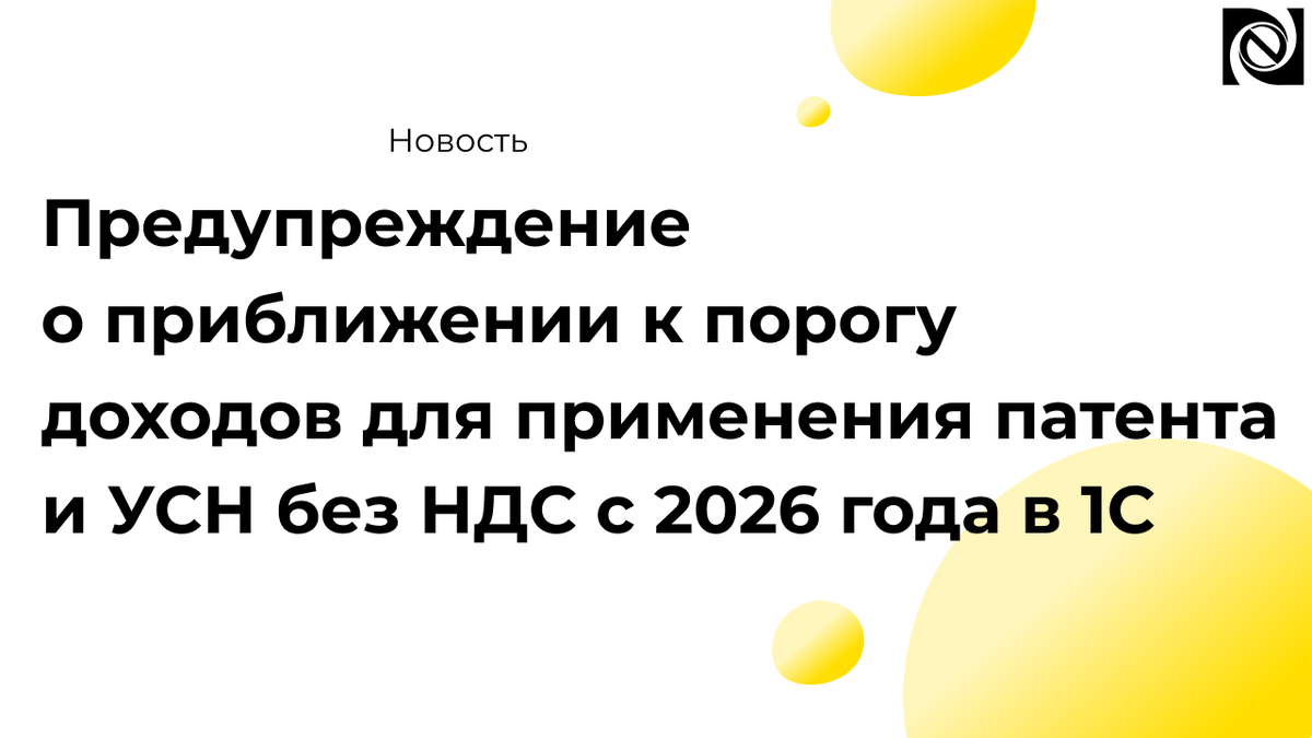 В «1С:Бухгалтерии 8» появилось новое предупреждение, которое помогает заранее контролировать доходы и не потерять право на патент или УСН без НДС с 2026 года. Рассказываем, как работает механизм и на что обратить внимание уже сейчас. Подписывайтесь на Telegram-канал, чтобы первыми узнавать о новых возможностях 1С и изменениях законодательства В программе «1С:Бухгалтерия 8» начиная с версии 3.0.184.21 реализовано предупреждение о приближении к планируемым порогам доходов для применения патента и УСН без НДС, которые вступят в силу с 2026 года. Нововведение позволяет пользователям заранее отслеживать уровень доходов и снизить риск утраты права на льготные режимы налогообложения. Чтобы сохранить право на патент и УСН без НДС, необходимо соблюдать следующие условия: В программе автоматически анализируются доходы организации.