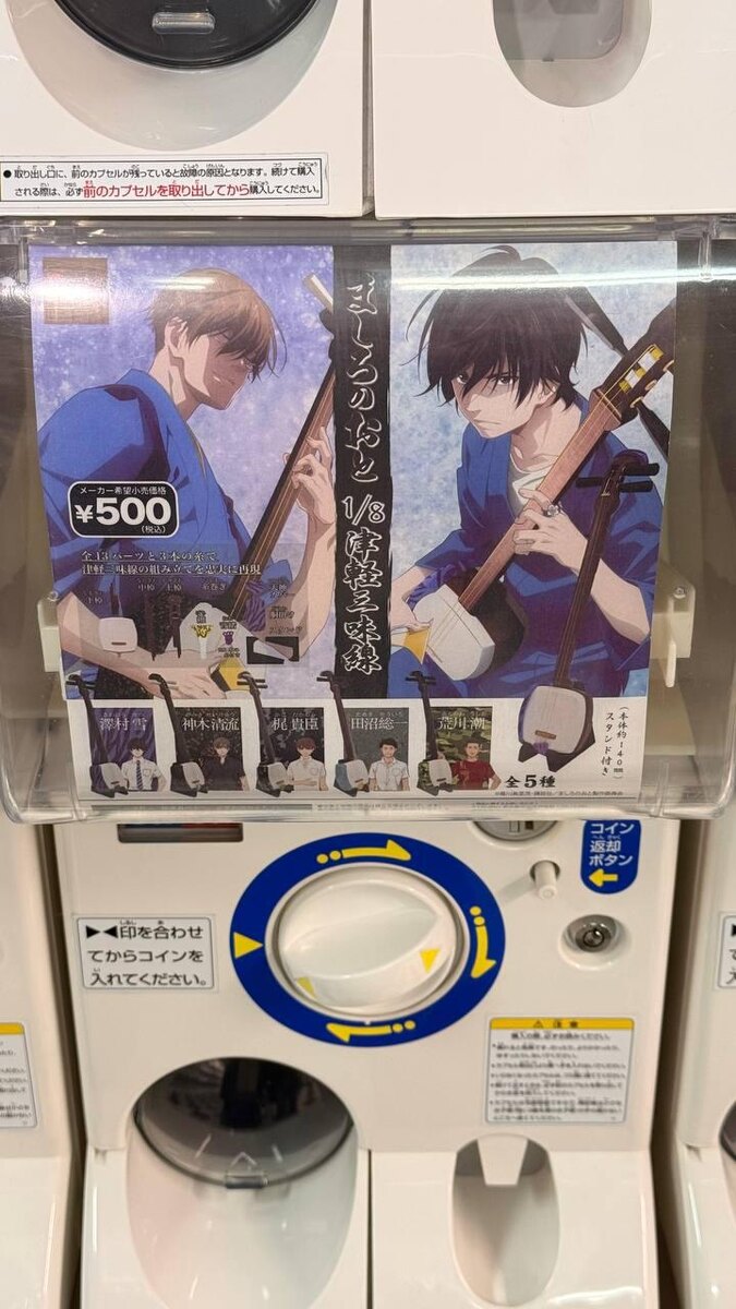 ! И закончим неделю необычным представителем нашей регулярной рубрики. Вместо красивых артов и анимации предлагаю в этот раз полюбоваться коллекцией аниме-гача-аппаратов, которую я нафотографировал в поездке в Японию. С отрывом самым популярным тайтлов в таких аппаратах был «Волейбол». На втором месте разные иттерации «Камен Райдера». Из уникального — случайно нашел сямисэн из «Чистого звука» и миниатюрные кассеты с «Легендой о героях галактики»