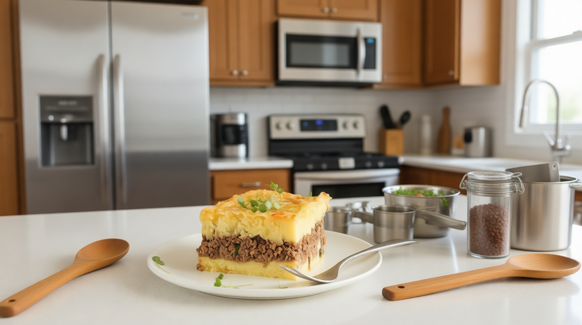 - Вегетарианский: Замените фарш на 300 г отварной чечевицы. Картофельный слой промажьте томатным соусом вместо заливки.
