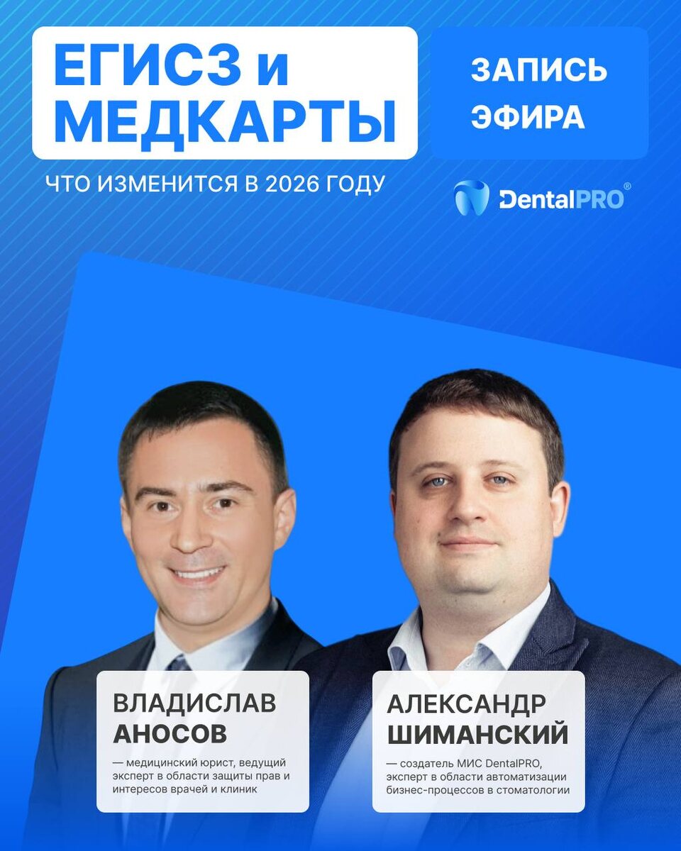 ? На этот вопрос в прямом эфире ответил Александр Шиманский, создатель МИС DentalPRO, эксперт в области автоматизации бизнес-процессов в стоматологии, и Владислав Аносов, медицинский юрист, ведущий эксперт в области защиты прав и интересов врачей и клиник. Эксперты рассказали: ✔️ Как работать с ЕГИСЗ без проблем и ошибок? ✔️ Как грамотно заполнять медкарты в 2026 году? ✔️ Каковы тренды и особенности юридической защиты в 2026 году? Запись трансляции доступна на ведущих платформах: 😄 ВКонтакте 🥰 Rutube 😉 YouTube Подписывайтесь на наши социальные сети, чтобы первыми узнавать о следующих эфирах! #Вебинары