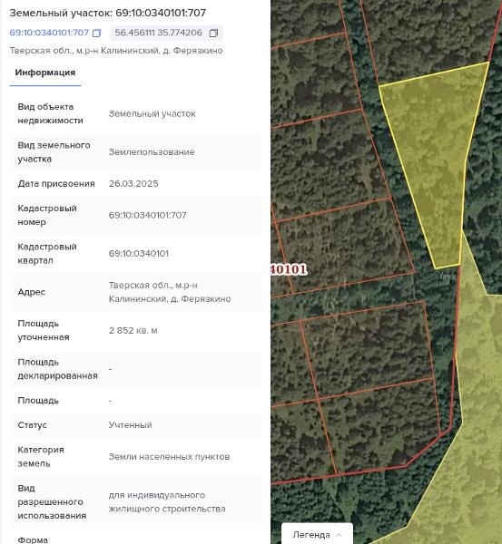 Название: Земельный участок с кадастровым номером 69:10:0340101:707 площадью 2852 кв