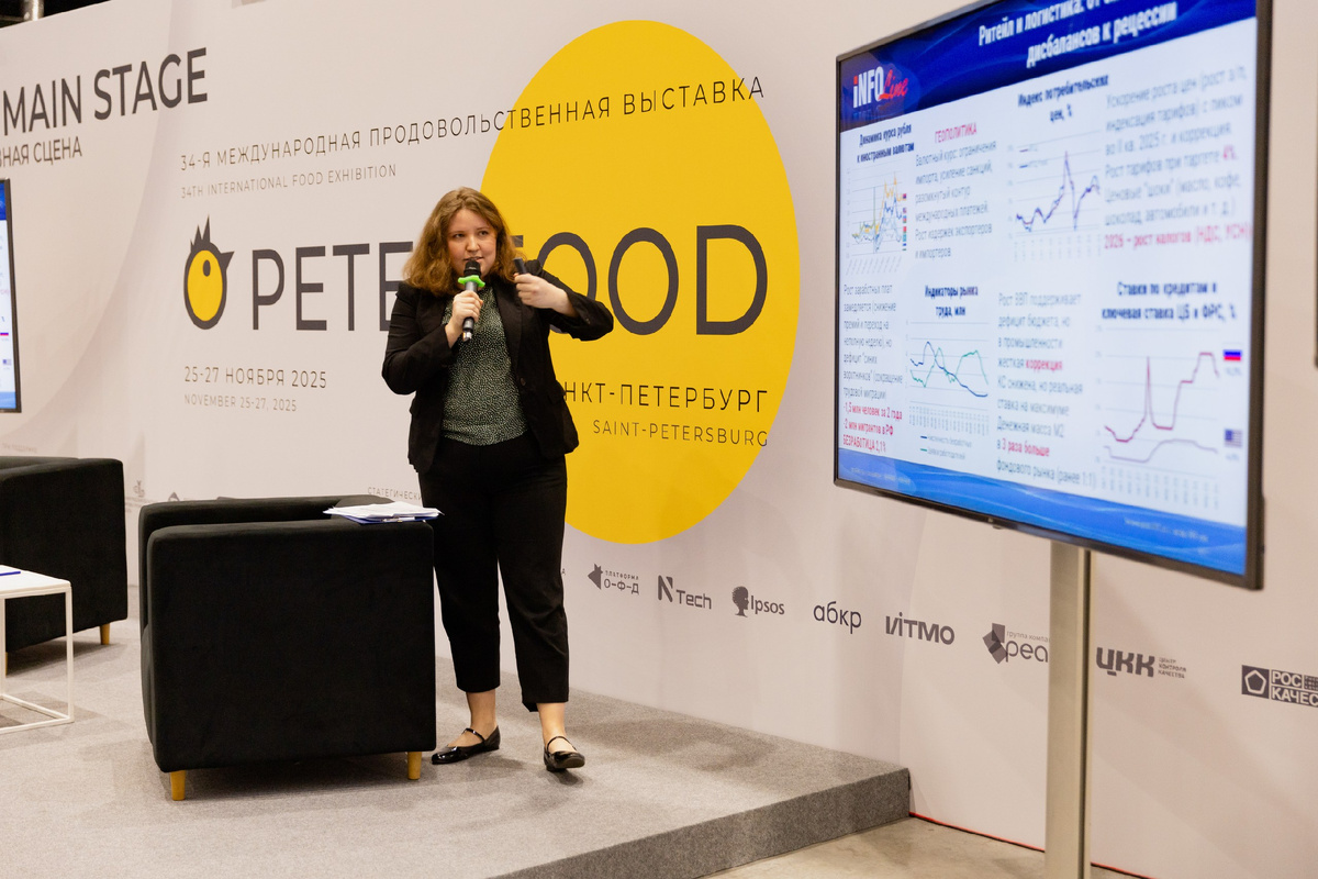 Продолжаем подводить итоги уходящего года, и на этот раз обращаемся к выступлению Ольги Рычковой, руководителя направления розничной торговли FMCG в INFOLine. На выставке «Петерфуд» эксперт представила актуальный взгляд на состояние и перспективы российского продовольственного ритейла — от макроэкономических вызовов до трансформации торговых форматов и роста e-grocery. Российский FMCG-ритейл в 2025 году вступил в фазу зрелости и стагнации. Реальный рост оборота розничной торговли продовольствием в физических объемах составил всего 2,3 %, тогда как в денежном выражении — 13,0 %, что в первую очередь обусловлено инфляцией. Индекс потребительской уверенности продолжает снижаться и по состоянию на октябрь 2025 года находится на уровне–2 %, что отражает осторожность покупателей и смещение спроса в сторону рационального потребления. Рынок переживает глубокие структурные изменения, вызванные демографическими и макроэкономическими сдвигами: Три главных игрока активно формируют современный ланд