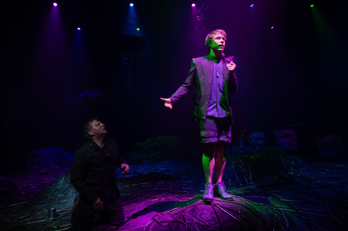 👍👍👍 #Лиза_Трофимова (ГИТИС, мастерская Аллы Шевелёвой) – о спектакле Елизаветы Бондарь «Макбет» в Театре Наций: “Fair is foul, and foul is fair„ «Вздрагивания, усмешки, покачивания головами, выражающие раздражение и несогласие, — вот что можно наблюдать в зрительном зале во время показа “Макбета” Елизаветы Бондарь в Театре Наций. В спектакле режиссёр создаёт гнетущую, жуткую атмосферу — в первую очередь, за счёт звука. Именно он занимает ведущую роль среди прочих выразительных средств. Источники звука — листы металла, развешанные по периметру сцены, стальные трубы, при ударе по которым раздаётся гром, режущие слух лязг и скрежет. Эти шумы, словно выстрелы или взрывы, сопровождают каждый изломанный шаг героев, каждый жест, каждое грязное слово жителей этого мира — апокалиптичного, искалеченного, мира вечной войны, придуманного режиссёром совместно с художником Валидой Кажлаевой. Перед зрителями предстаёт огромное дерево из толстой проволоки, пустившее