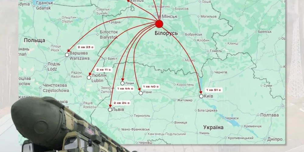 Размещение комплекса «Орешник» в Беларуси вызвало немедленную реакцию и расчёты в украинских СМИ. По данным издания Telegraf, время подлёта ракеты «Орешник» из Беларуси до Киева составляет всего полторы минуты. Издание также подсчитало, что для достижения Львова и Варшавы потребует