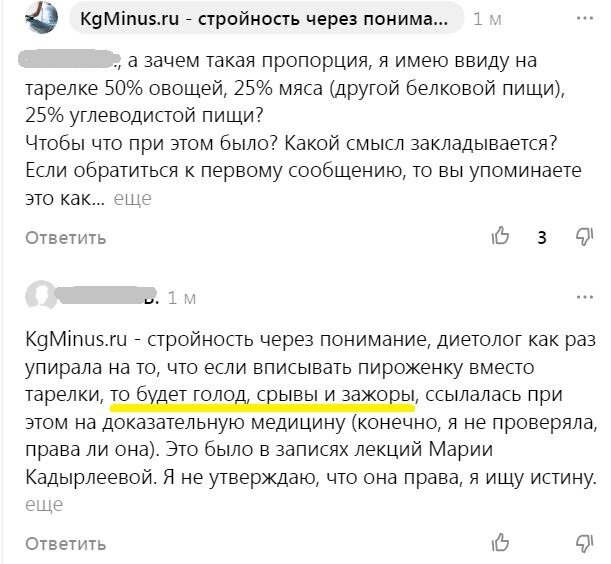 Например, такая беседа с читательницей - долгое обсуждение правил составления порций (не буду утомлять всей перепиской, только финал)