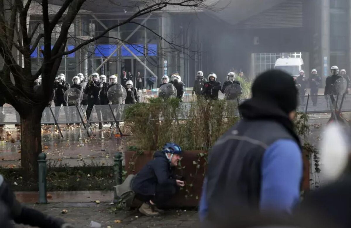 Сотрудники ЕП получил и предупреждения о применении слезоточивого газа. Системы вентиляции в здании отключены, а позже сотрудникам настоятельно рекомендовали избегать площади Люксембург и не носить открыто значки ЕС на улице.