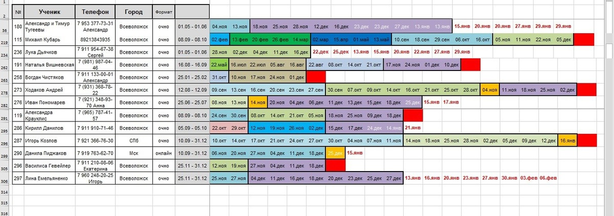 Для вашего удобства отдельно прилагаю список закончившихся абонементов и неоплаченной брони