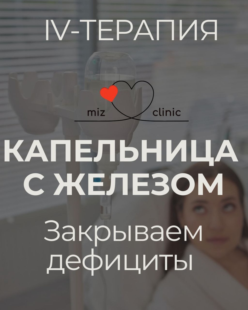 ». Железо влияет на энергию, концентрацию, иммунитет и состояние кожи и волос. Его дефицит часто есть даже при нормальном гемоглобине — и именно он даёт ощущение, что организм работает на минимуме. Эффекты после курса: — больше энергии и выносливости — ясная голова и лучше фокус — поддержка иммунитета — улучшение состояния кожи и волос Показания: — низкий ферритин / дефицит железа — хроническая усталость, головокружения — выпадение волос, ломкие ногти — повышенные нагрузки и стресс В Mizclinic капельницы назначаются только после диагностики и под контролем врача. Перед Новым годом важно входить в праздники в ресурсе, а не на износе. Г. Москва, ул Правды 2а Метро Белорусская 8966-040-00-54