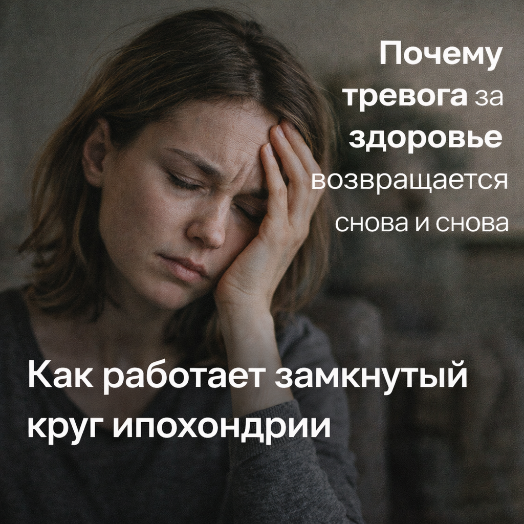«Почему мне снова страшно? Я же уже всё проверял. Анализы хорошие, врачи ничего не нашли». И это действительно сбивает с толку. Кажется, что после обследований тревога должна уйти. Но она возвращается — иногда даже сильнее, чем раньше. Важно понять: ипохондрия — это не про один конкретный симптом. Это не про сердце, не про голову и не про очередной анализ. Это про механизм тревоги, который продолжает работать. Этот механизм почти всегда выглядит одинаково: появляется телесное ощущение →