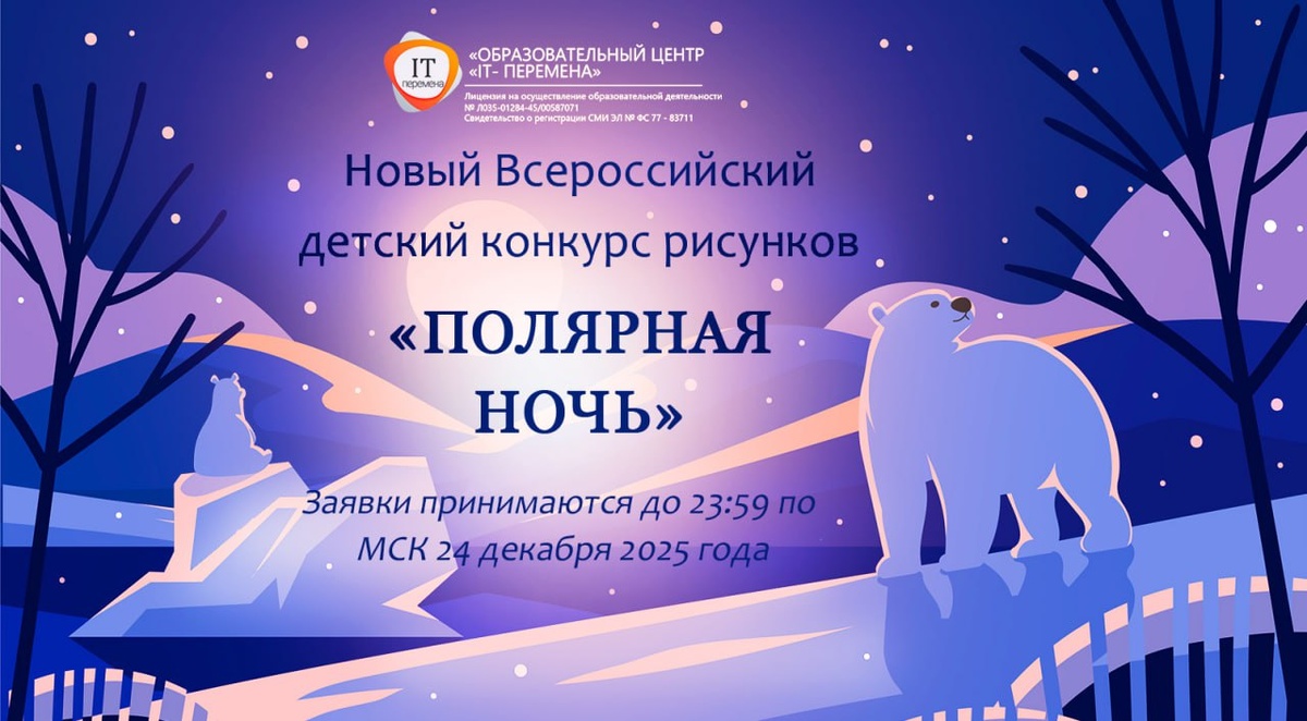 » Правда ли, что самая долгая ночь в году — самая тёмная? Нет, она — самая светящаяся! Конкурс «Полярная ночь» — это исследование невидимого. Мы предлагаем участникам стать первооткрывателями света, который живёт в глубине зимы: холодное свечение луны на снежном насте, мерцание далёких созвездий, застывшие всполохи авроры в тёмной воде, или тёплый луч фонаря, рисующий на тропинке золотой круг. Это вызов — увидеть и передать игру контрастов, где темнота не пугает, а лишь подчёркивает малейший лучик. Создайте работу, которая доказывает, что даже в пик зимней тьмы мир полон света и волшебства. Электронные наградные документы - бесплатно! Заявки принимаются до 24 декабря 2025 года включительно. Ссылка на конкурс: itperemena.ru/noch