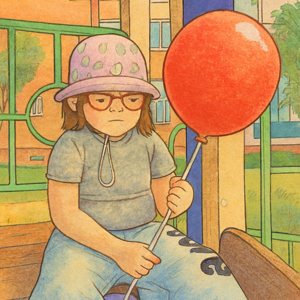 Девочке подарили воздушный красный шар. Большой, красивый, на палочке. Но девочка почему то грустила.