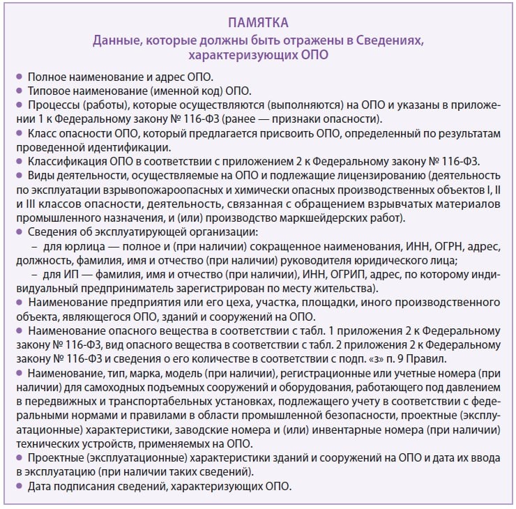 💡 Какие данные должны быть отражены в Сведениях, характеризующих ОПО?