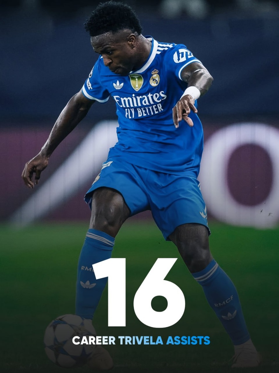 🇧🇷 Вини оформил 16 ассистов "шведой" в своей карьере