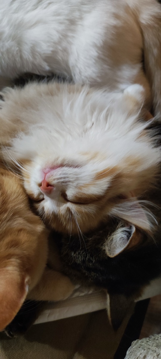 Здравствуйте и процветайте, дорогие вы наши🥰 В доме тишина. Все устали. Помогали мне наматывать леску на катушку. Я и поднимала её повыше, и пыталась отвлечь их интересными игрушками. Но нет. Леска интересней. Беляшик вставал на задние лапы, а передними пытался схватить леску. Ему это не удалось. А вот у Мурзика получилось. Схватил и бежать. Я за ним. Может перекусить, тогда придётся выбрасывать. Тяну за кончик, но Мурзик только сильнее сжимает зубы. Подняла его, пузико пощекотала, всё равно держит. В итоге перекусил. А мне пришлось отматывать новый кусок лески. В игру включились почти все. Даже Тиша. Пух, понятно, в первых рядах. От этого вообще трудно что-то скрыть. Открыла стол, достала крупу. Хотела поставить обратно, но что-то мешает. Заглянула, там Пух сидит. Мордашка невинная. Вчера с такой невинной мордашкой нагадил на постель. Тем самым снизил градус моей влюблённости. А то умилялась всему, - как лежит, как ходит и бегает. Чрезмерная привязанность не идёт на пользу. Зам