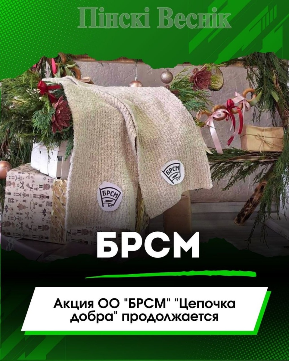 ⏩В рамках республиканской благотворительной акции ОО "БРСМ" "Цепочка добра" учащиеся средней школа №11 им. В.А. Гайдаенко устроили творческую мастерскую по вязанию шарфа с логотипом БРСМ – Шарф с логотипом БРСМ - идеальный подарок, сделанный с душой @Пинский Вестник 📱Ютуб 📱ВК 📱ИНСТАГРАМ 📱ОК 📱ФЕЙСБУК 📱ТИК ТОК Прислать новость
