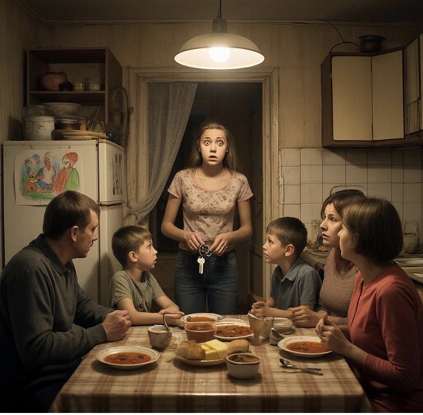 Но в кухне сидела незнакомая семья. Мужчина лет сорока, женщина помладше и двое детей — мальчик и девочка лет десяти. Они ужинали. На столе стояли тарелки с борщом, хлеб, масло. Как дома.