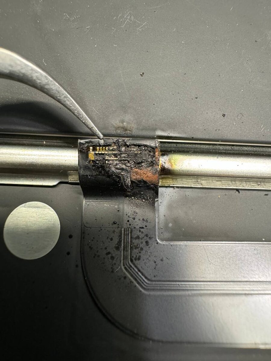 MacBook Air на М2 после другого сервиса, коротнули и спалили аккумулятор. Ремонт платы и ремонт батареи.