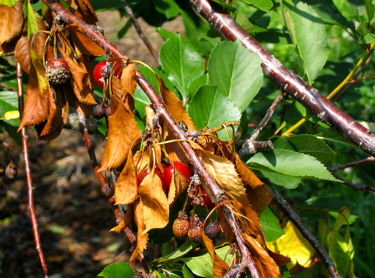 Вишневый сад – это сказочно красиво и вкусно. Правда, только при условии, что вишням нравится дарованный уход. Если допустить 5 ошибок, то урожай будет мелким как для колибри и ужасно кислым. А еще на деревьях может обжиться опаснейший грибок – монилиоз. Неправильная посадка Вишня любит свет и простор. Если этого она не получит, то ветки будут вечно заняты стремлением за место под солнцем, от того им будет не до пышного цветения и обильного плодоношения. Категорически нельзя размещать саженец вблизи крупных конкурентов (яблоня\шелковица\груша) и около закислителей (хвойные). Загущенность насаждений Формировать вишни необходимо с малых лет, стараясь нормировать число веток. Образцовая крона вовсе не должна быть плотной, она должна дышать. Без полноценного проветривания уже после первых затяжных дождей велика вероятность развития грибков, самый опасный из которых – монилиоз. Этот фитопатоген иссушает ветки и листья, придавая им плакучий вид. Вылечить его навсегда невозможно, но систе