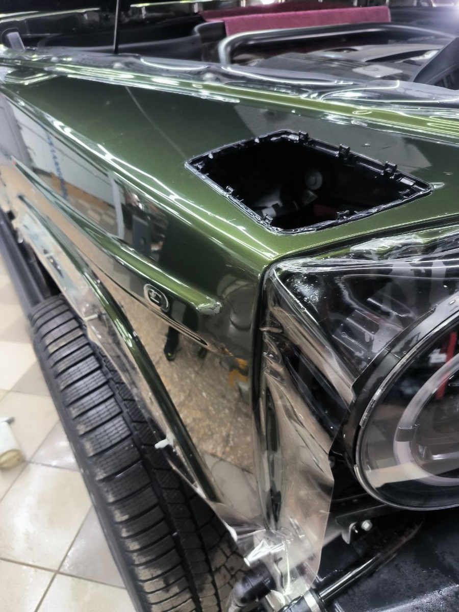 Mercedes-Benz G-Класс прошёл сертифицированный апгрейд: оклейка кузова антигравийной пленкой, профессиональная шумоизоляция колесных арок и нанесение керамического состава на интерьер салона. Защита от внешних воздействий, комфорт в салоне и долговечная красота дерева и кожи — всё это ближе к идеалу вместе с нами. Оклейка кузова антигравийной пленкой: Антигравийная пленка премиум-класса, толщина около 90–150 мкм. Прозрачные клеевые составы для долговременной фиксации, высокая эластичность и self-healing ( свойство материалов самовосстанавливаться) свойства. Шумоизоляция колесных арок: Шумоизоляционная материал (виброизоляционная подложка и акустическая прослойка) с высоким коэффициентом звукопоглощения. Керамическое защитное покрытие для интерьера (кожа, дерево и пластик). Варианты материалов зависят от желаемого финиша: глянец или мат, цветовая гамма, а также чувствительность к ультрафиолету и химическим воздействиям. По желанию можно расширить пакет: добавление антицарапной защиты н