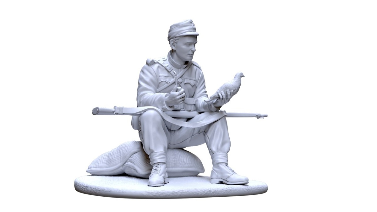 Shot.mini представили миниатюру "Пехотинец-связной с голубем, в линейке Австро-венгерской армии" в масштабе 75мм.
