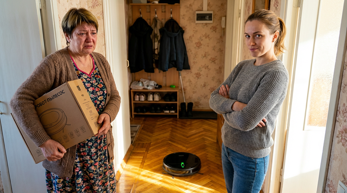 – Обычный пылесос требует моего времени и сил, – Полина подняла глаза на мужа. – А я, как выяснилось, ленивая молодежь, которой лишь бы в телефоне посидеть. Так что этот робот остается у нас. Я давно о нем мечтала. Раз твоей маме он не нужен, значит, это будет подарок мне. За моральный ущерб.
