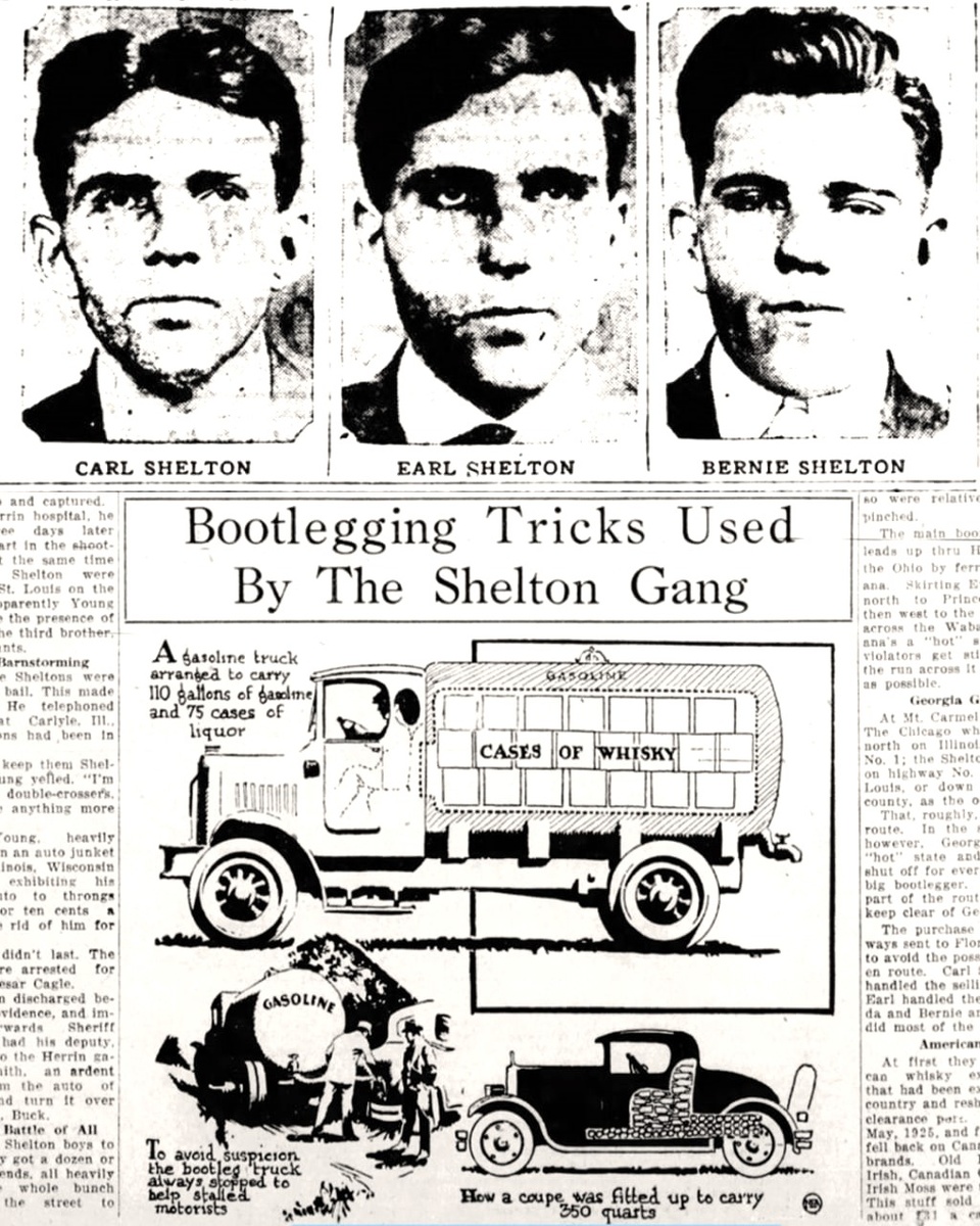 В истории американского «сухого закона» хватает громких имён, но большинство из них давно превратились в набор штампов: гангстеры в шляпах, томми-ганы, подпольные бары. На этом фоне банда братьев Шелтон выглядит почти как забытая глава, хотя по уровню жестокости, изобретательности и размаху они ничем не уступали более раскрученным персонажам. Южный Иллинойс в 20-е годы был их территорией. Карл, Эрл и Берни Шелтон, которого чаще называли Рэдом, выстроили криминальную империю вокруг самого очевидного ресурса эпохи - алкоголя. Бутлегерство, азартные игры, контроль дорог и населённых пунктов. Всё это работало как часы, пока рядом не появился человек, с которым невозможно было договориться. Война, где не жалели никого Главным противником братьев стал Чарльз Биргер - фигура не менее жёсткая и амбициозная. Их конфликт быстро перерос из борьбы за рынки в полноценную войну. И это была не образная метафора. Обе стороны использовали самодельные бронированные грузовики. Машины усиливали металличе