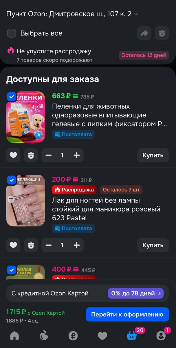 Озон тихо меняет цены в корзине в зависимости от региона доставки