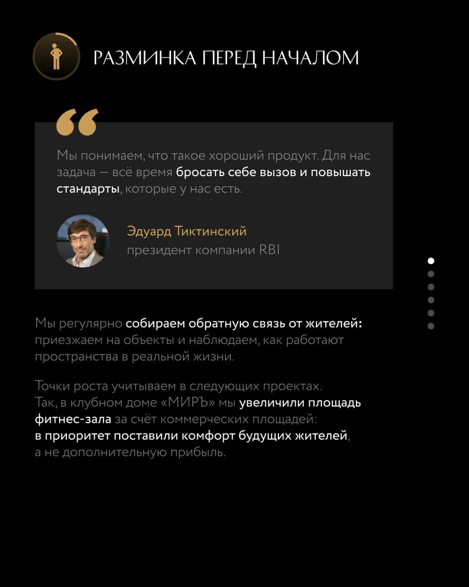 В клубном доме легко приобщиться к спорту, ведь фитнес-зал расположен на первом этаже проекта. Здесь тренировки больше не теряются среди других дел и органично вписываются в течение дня. Для полного погружения предлагаем немного потренироваться: 🔸 начните с активной разминки — изучите карточки: в них рассказали о фитнес-зале в проекте; 🔸 затем прокачайтесь в выборе планировки вашей мечты на сайте «МИРЪ».