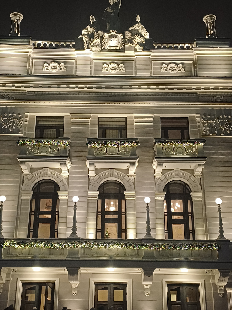 На протяжении многих, многих лет в фойе театра стояла только живая ёлка. И это было потрясающе. Так же в этом году нет ёлки на балконе здания театра. Раньше она тоже всегда была. Что произошло и почему вместо настоящей ,большой, ароматной ели поставили дизайнерское творение, я не знаю. Но искренне надеюсь, что кто-нибудь донесёт до руководства театра, что надо вернуть традицию…