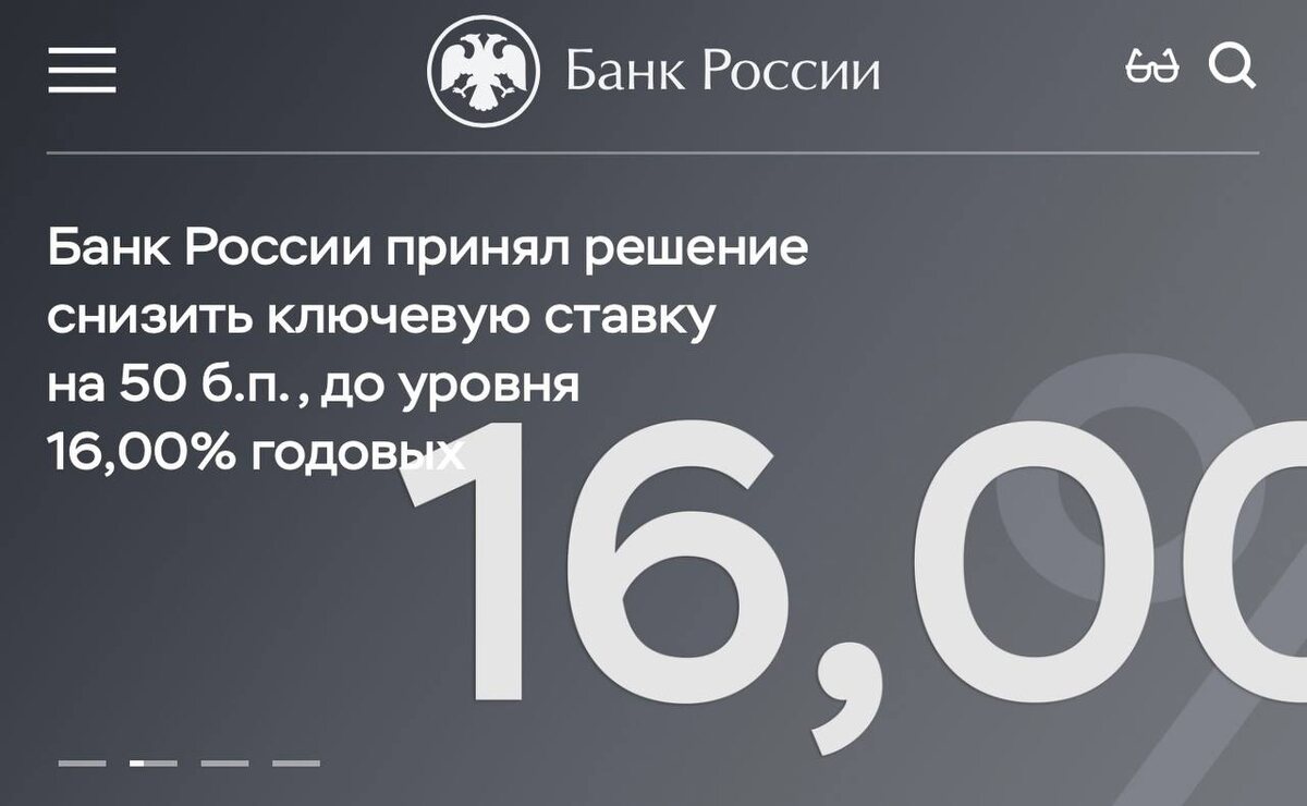 ⚡️Сегодня ЦБ снизил ставку на 0,5 п.п – с 16,5 до 16