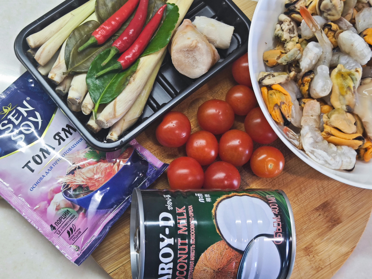 Яркий, ароматный, согревающий суп, где идеально сбалансированы острый, кислый, соленый и пряный вкусы. Остро, ароматно и безумно вкусно. Лайм, лемонграсс, чили и кокосовое молоко творят чудеса. Готовится быстро, но требует особых ингредиентов. Время приготовления: 25-30 минут Количество порций: 3-4 Полное видео --- Ингредиенты: · Лёгкий куриный бульон — 1,5 литра · Стебли лемонграсса (лимонной травы) — 2-3 шт. (толстые, порезать на отрезки 4-5 см и слегка размять). В Ашане или Метро продаются наборы для приготовления ТОМ-ЯМа · Корень галангала (или обычного имбиря) — 3-4 тонких ломтика (галангал предпочтительнее, он имеет восхитительный уникальный аромат) · Листья каффир-лайма (лайм-кванта) — 4-6 шт. (можно заменить цедрой 1 обычного лайма) · Маленькие перчики чили — 3-8 шт. (я подаю отдельно перчик и каждый добавляет себе в тарелку, порезав его) · Паста Том Ям — 2-3 ч.л. (покупаю на вб или озоне) . Сливочное масло Основные компоненты: · Креветки королевские — 300-400 г (очищенные, м