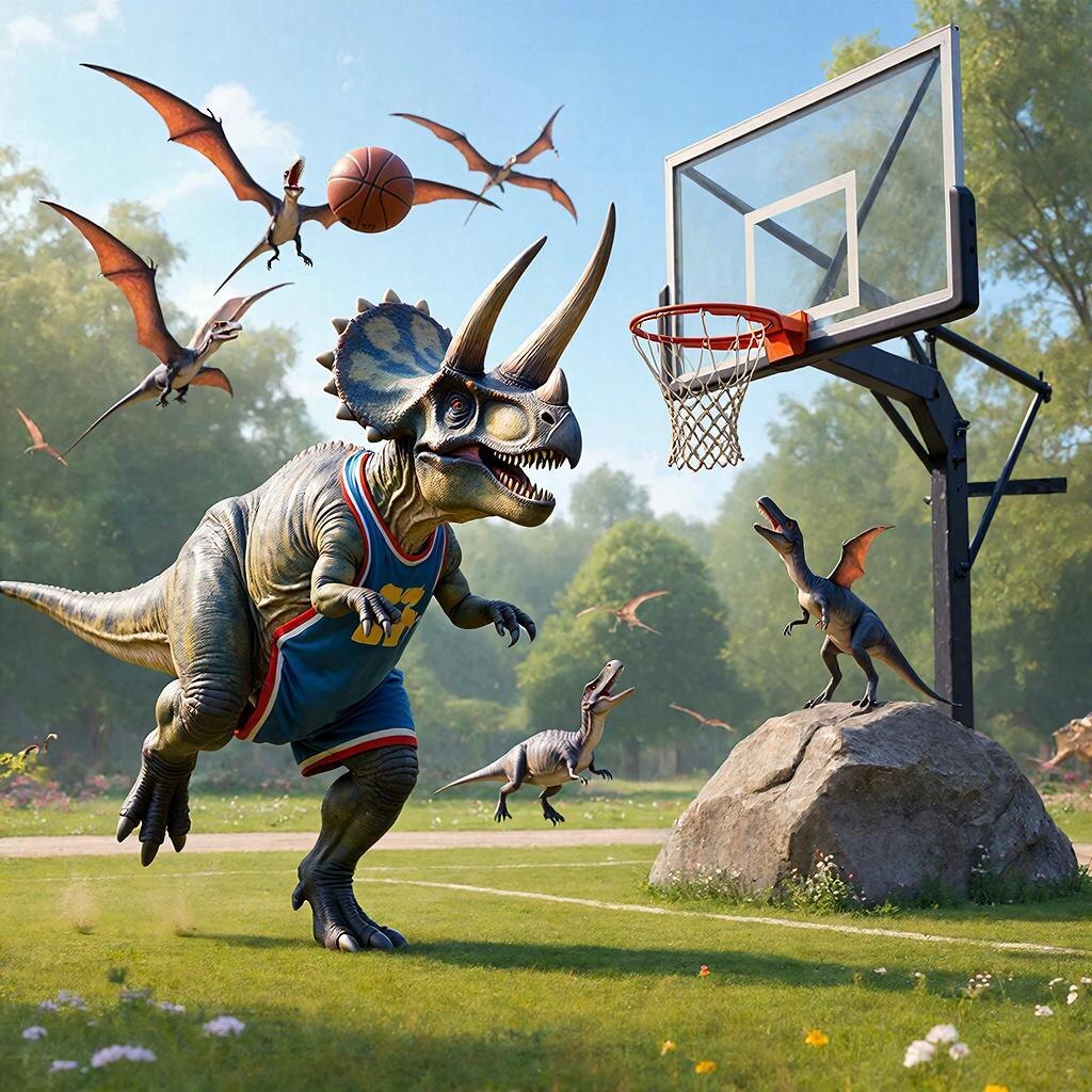 С тех пор трицератопсы стали звездами доисторического баскетбола. Они доказали, что в спорте важна не только скорость и рост, но и сила, стратегия и умение использовать свои уникальные особенности. А Трики, первый динозавр-баскетболист, навсегда остался символом того, что даже самые невероятные мечты можно реализовать, если верить в себя и не бояться быть другим. Его номер «3» (по количеству рогов) стал самым почетным в лиге.