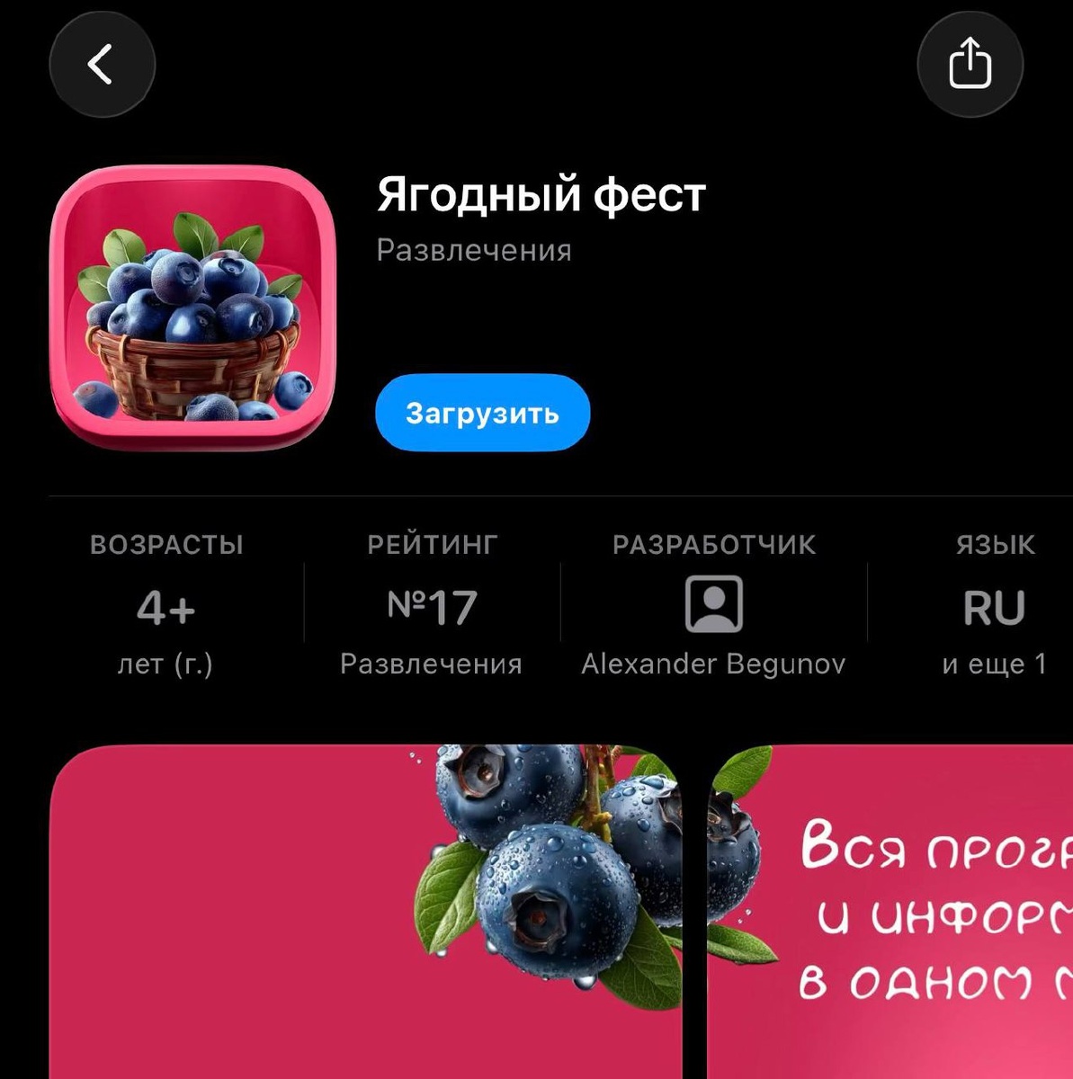 Приложение Россельхозбанк вернулось в App Store. Теперь называется «Ягодный фест».