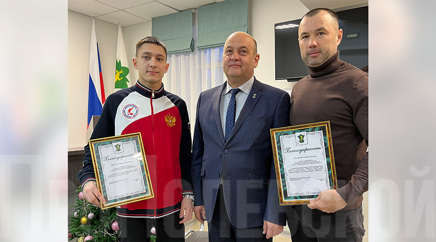 16 декабря чемпиона и его наставника пригласили в администрацию Полевского муниципального округа. Их приветствовали глава округа Константин Поспелов, заведующий отделом по физкультуре и спорту Оксана Фишер и директор спортивной школы Марат Галиев.