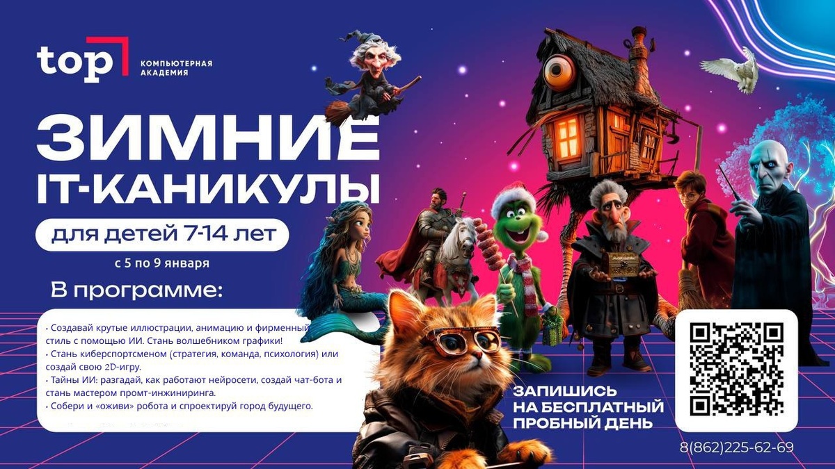 !✨ 🔥Только до 25 декабря — скидка 45% на всю смену! Стоимость всего 6426 за 5 дней Даты 5.01 - 9.01.26 Время с 10:00 до 13:00 Остались последние места🤩 👉 Выбрать направление и забронировать: 📞 +7 (862) 225-62-69 MAX: +79384674162 Ссылка на сайт: https://sochi.top-academy.ru/education/winter-it-camp 🎨 Создавай крутые иллюстрации, анимацию и фирменный стиль с помощью ИИ. Стань волшебником графики! 🎮 Стань киберспортсменом (стратегия, команда, психология) или создай свою 2D-игру 🧠 Тайны ИИ: Разгадай, как работают нейросети, создай чат-бота и стань мастером промт-инжиниринга. 🤖 Собери и «оживи» робота и спроектируй город будущего. 🔥 Места в группах ограничены. Бронируйте сейчас! Это не уроки — это создание своих проектов в команде таких же увлеченных! Каждому ребенку гарантированный подарок по окончанию смены🎁