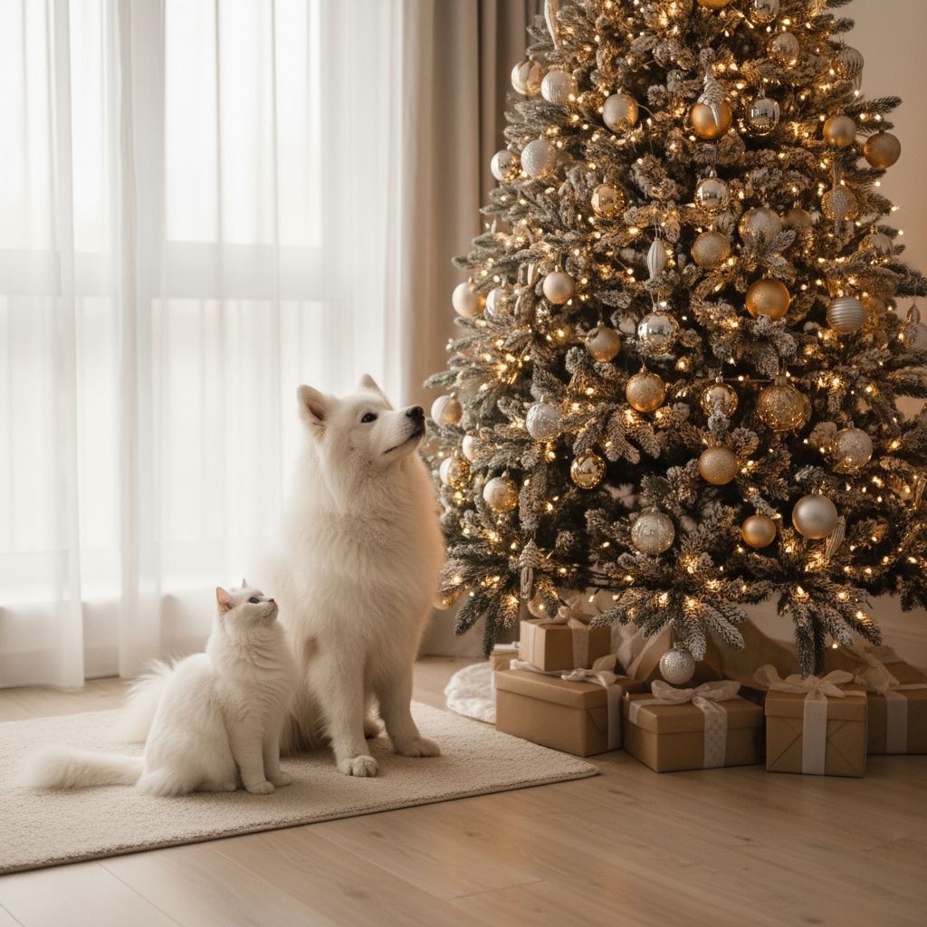 Новогодняя ёлка наполняет дом уютом и праздничным настроением. Но для кошек и собак она часто выглядит как новый объект для игры, исследования и даже охоты. Блестящие игрушки, шуршащий дождик и насыщенный хвойный аромат делают ёлку особенно привлекательной для кошек и собак, что иногда заканчивается травмами, стрессом и испорченным праздником. Давайте разберёмся, как сделать ёлку безопасной для питомцев и сохранить её целой до конца праздников. Оба варианта требуют осторожности: Выбирайте вариант, исходя из характера питомца и возможностей фиксации. Лучше всего устанавливать ёлку: Чем стабильнее конструкция, тем меньше соблазна и риска. Даже спокойный питомец может случайно опрокинуть ёлку. Что поможет: На нижние ветки лучше не вешать: Отдавайте предпочтение: Провода и мигающие огни часто привлекают внимание животных. Рекомендации: Чтобы снизить интерес кошек и собак к ёлке, важно сделать зону вокруг неё менее привлекательной и более безопасной. Что можно использовать: Важно: не испол