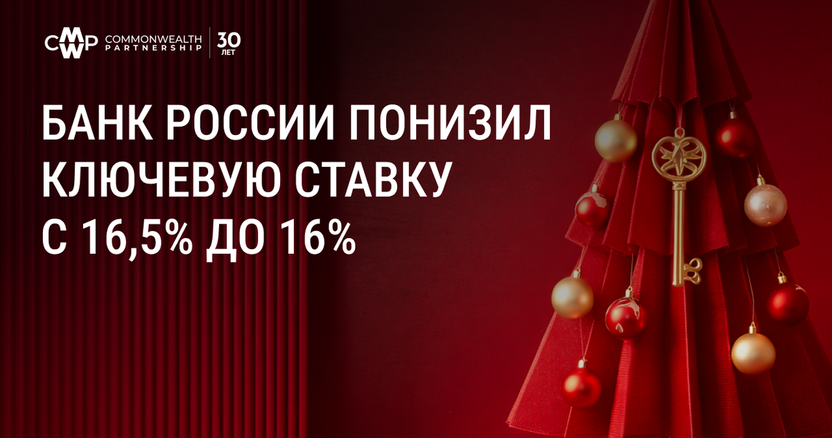 Отметим, что последнее снижение ставки на заключительном заседании в году было 8 лет назад, в 2017 г. Добрый день! Никита Дронов, заместитель руководителя департамента исследований и аналитики CMWP, прокомментировал решение ЦБ относительно ключевой ставки. 19 декабря Совет Директоров Банка России принял решение о символическом снижении ключевой ставки. Несмотря на то, что инфляционное давление в ноябре показало снижение, инфляционные ожидания бизнеса и населения остаются повышенными. Темп снижения устойчивых компонентов инфляции оказался недостаточным для дальнейшего смягчения ДКП и ЦБ официально признал, что достижение цели по инфляции с большой долей вероятности откладывается на 2027 год, что требует пролонгации жестких денежно-кредитных условий. Тем не менее, с учетом улучшения ситуации на рынке труда и нормализации бюджетной политики в следующем году, символическое решение регулятора о снижении дает скорее позитивный сигнал рынку, но коренным образом не меняет его конъюнктуру. Поз