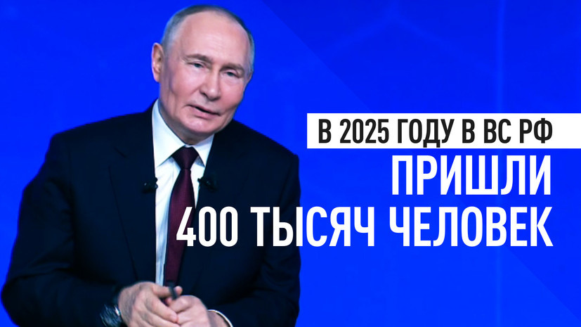 Владимир Путин заявил, что в стране много настоящих мужчин, добровольно идущих защищать интересы Родины. В ходе прямой линии он сообщил, что по контракту в Вооружённые силы РФ в 2025 году пришли служить более 400 тыс. человек. Глава государства также отметил высокий интерес к службе в новом роде войск — беспилотной авиации, из-за чего Минобороны даже вынуждено объявлять конкурс.