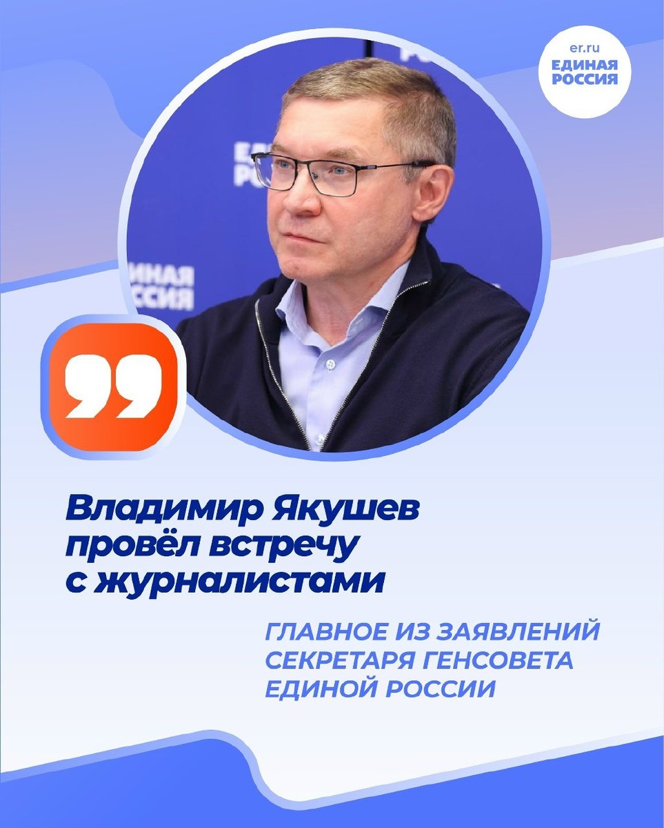 📝 Секретарь Генсовета Единой России Владимир Якушев провёл встречу с журналистами федеральных СМИ. Речь шла о подготовке к масштабной избирательной кампании 2026 года, вовлечении ветеранов СВО в политику, работе над народной программой 2.0.